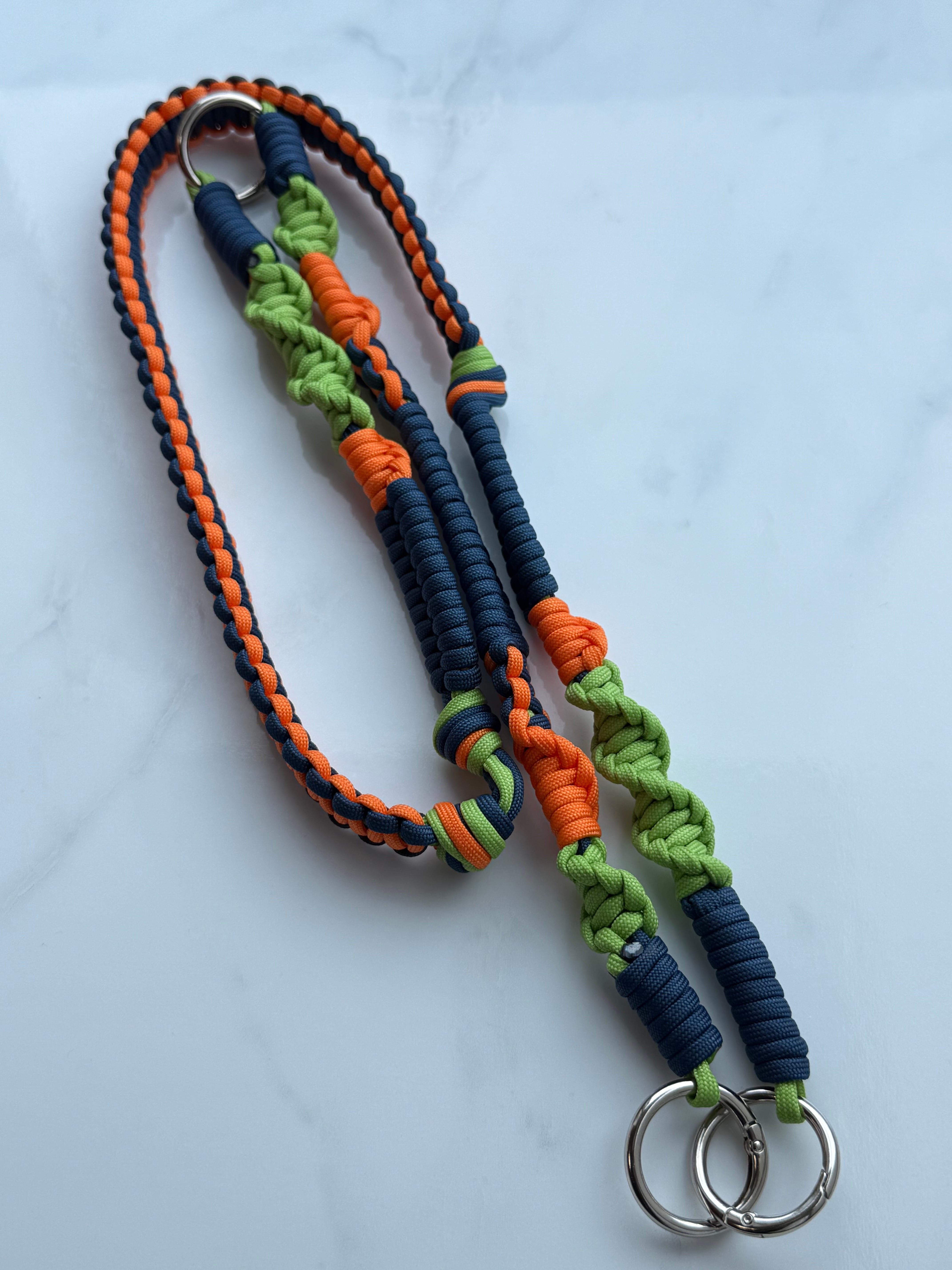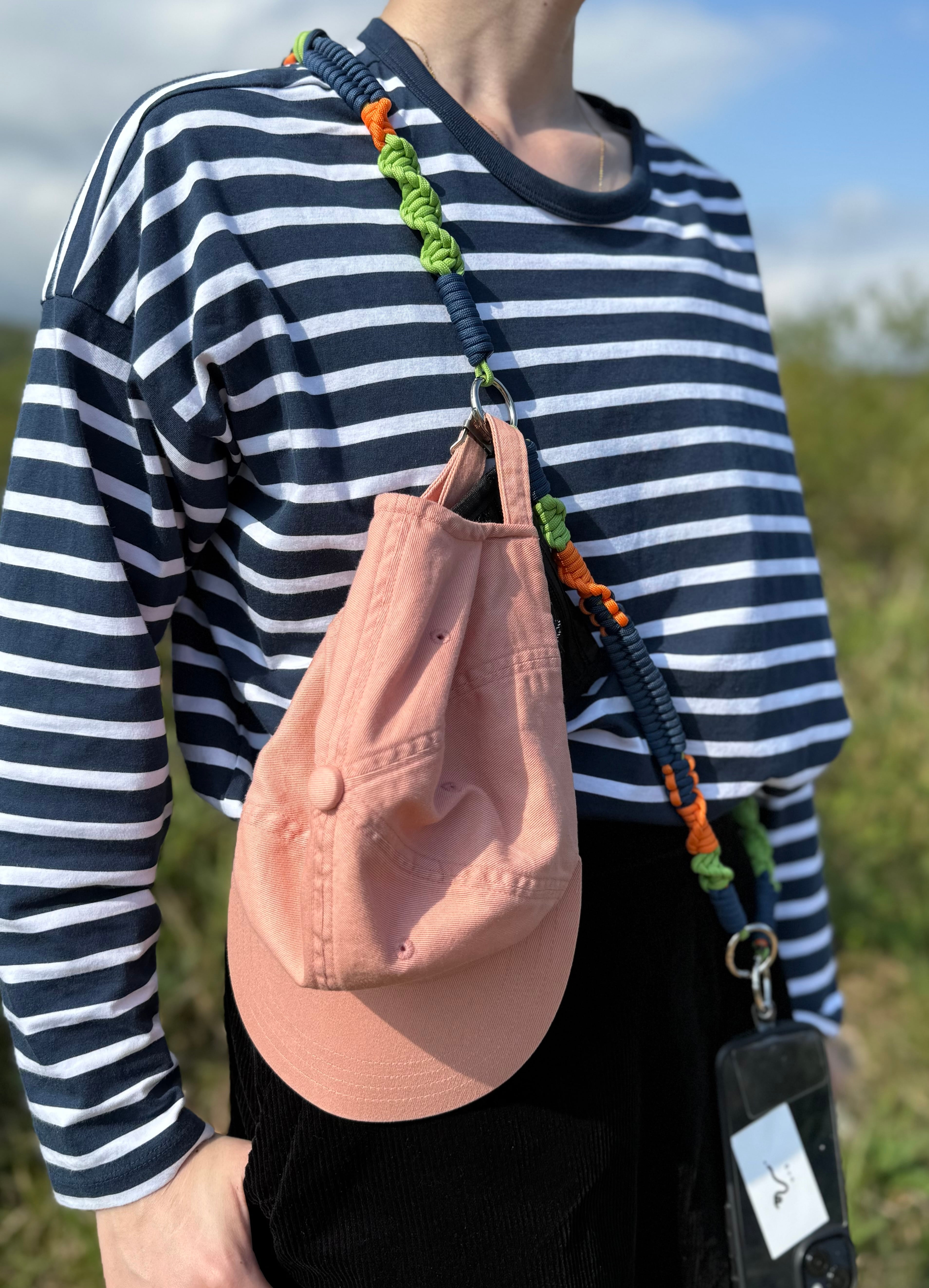 鮮やかなオレンジと黄緑、そこに落ち着きのあるネイビーを編み込んだ